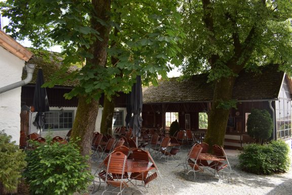 Der gemütliche Biergarten unter dem schattigen Kastanienbaum lädt im Sommer zum Verweilen ein.