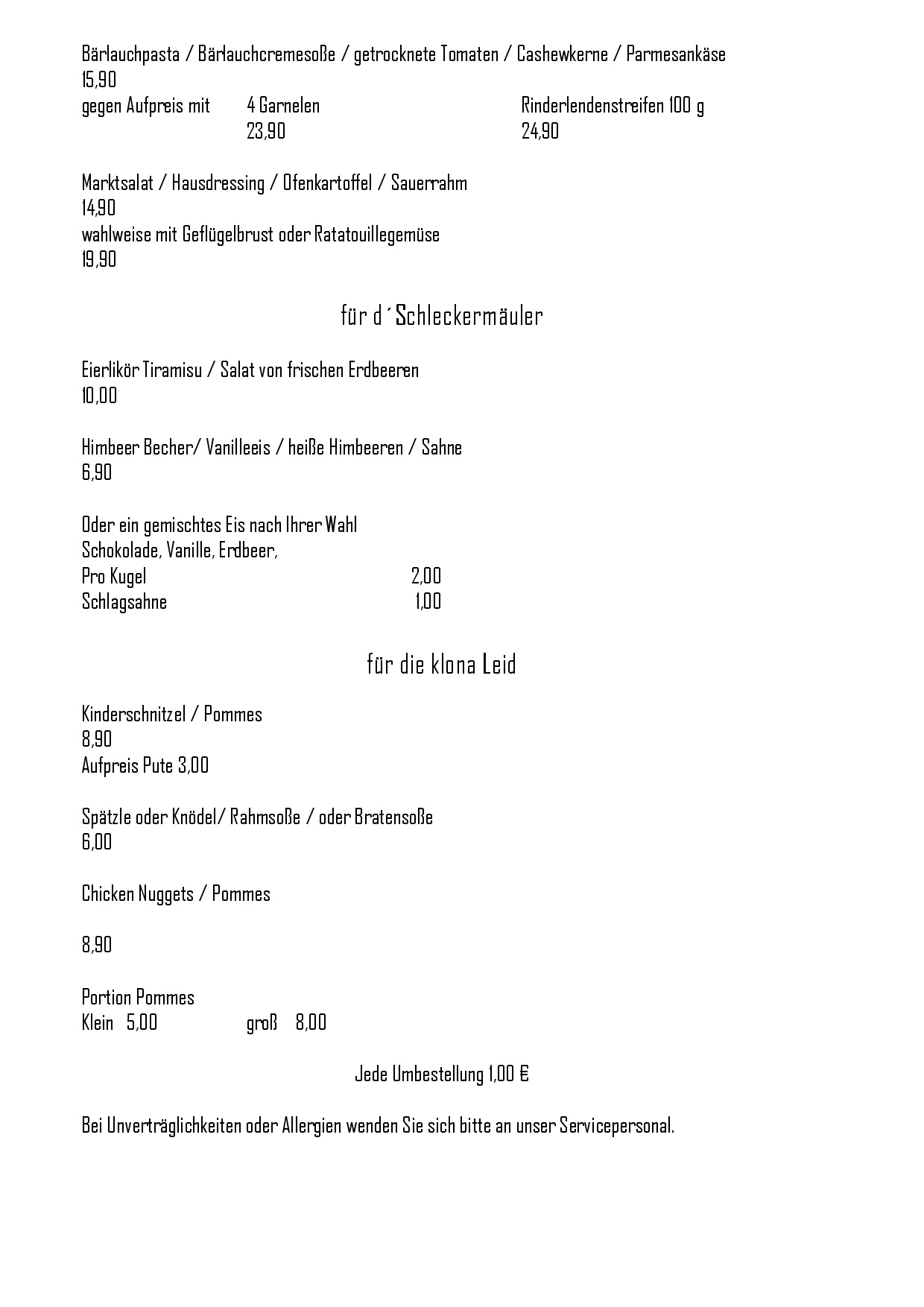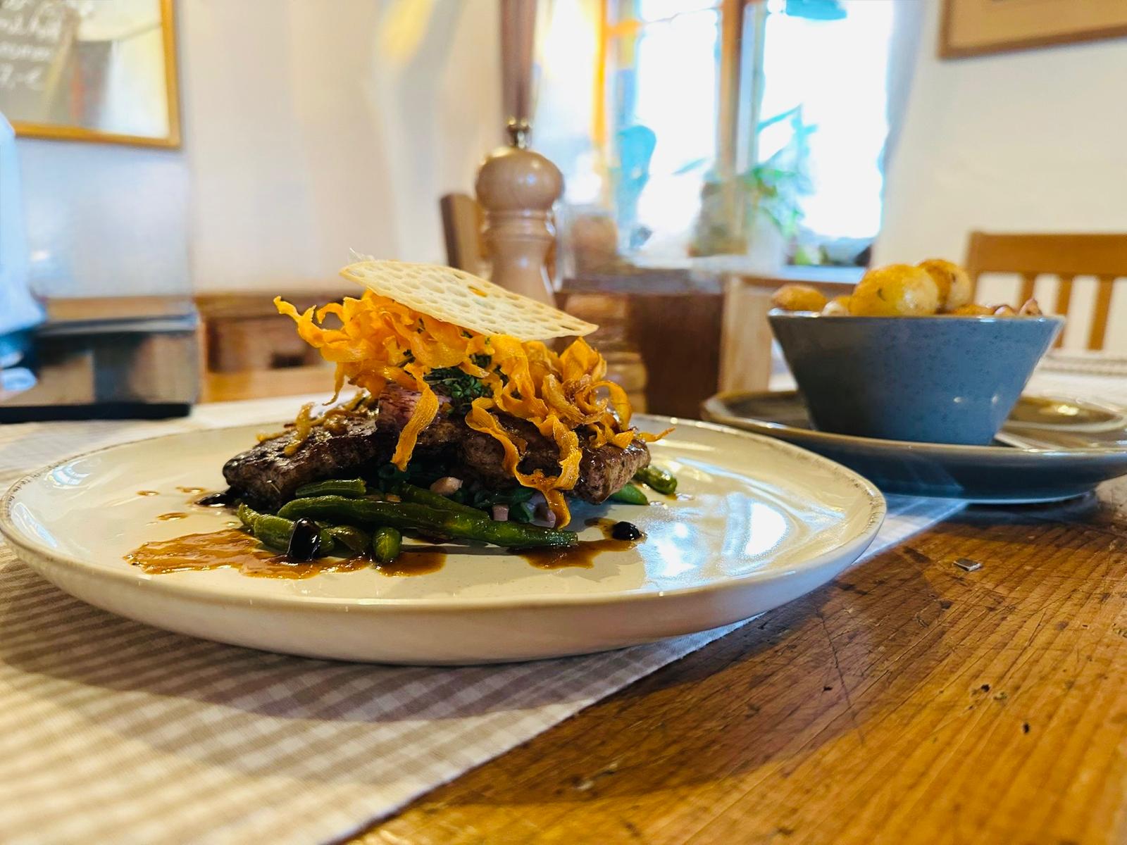 Genießen Sie unsere vielfältige Speisekarte mit regionalen Spezialitäten und internationalen Gerichten, die frisch zubereitet werden.