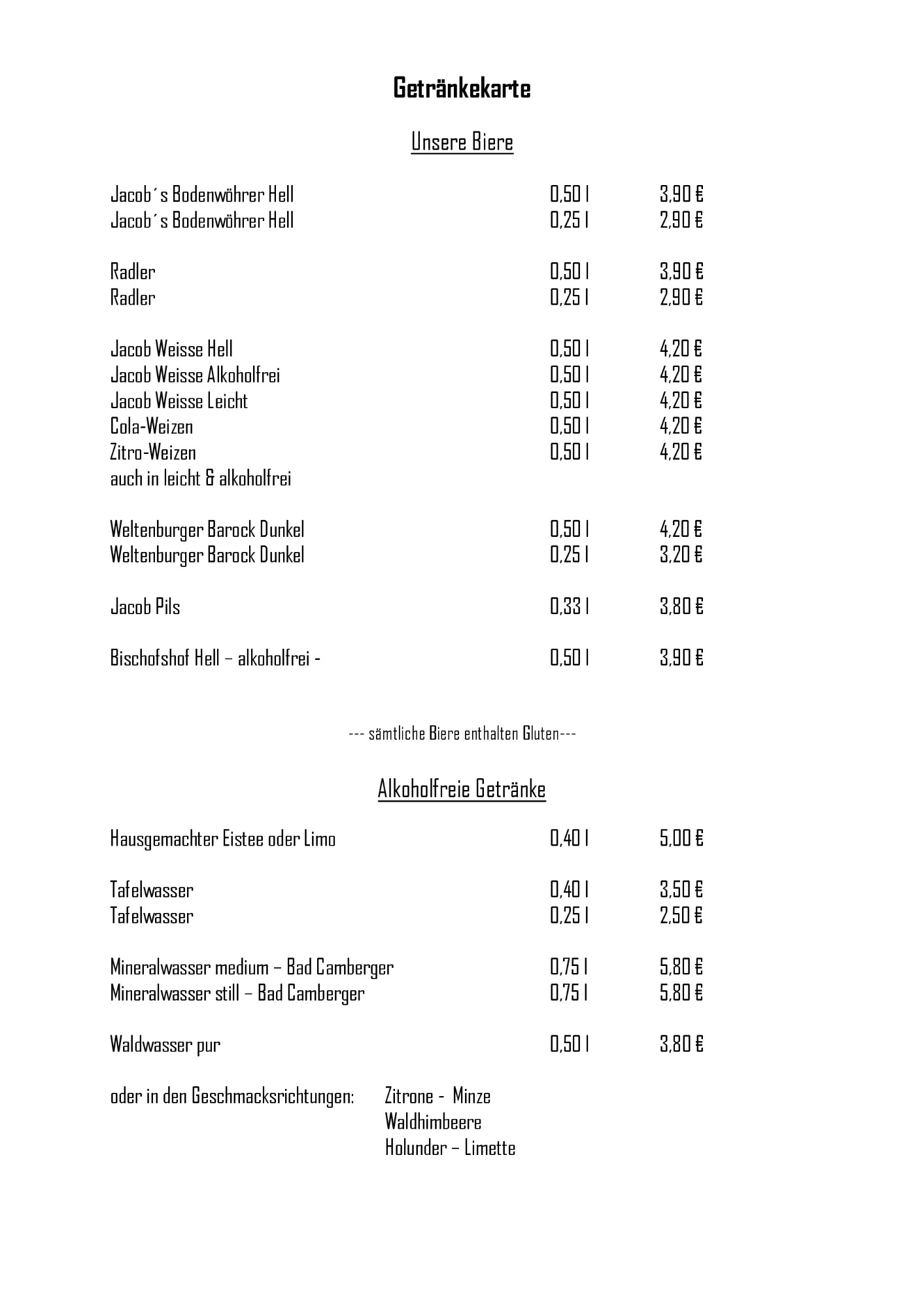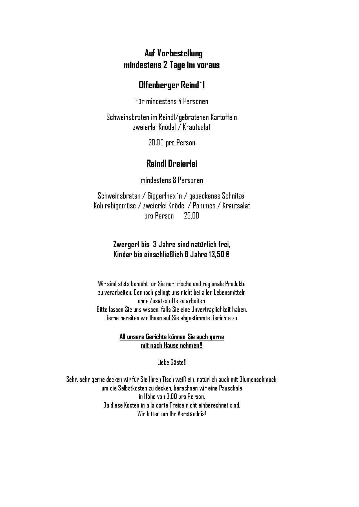 Unsere Speisenkarte gibt´s gerne auch "to go"